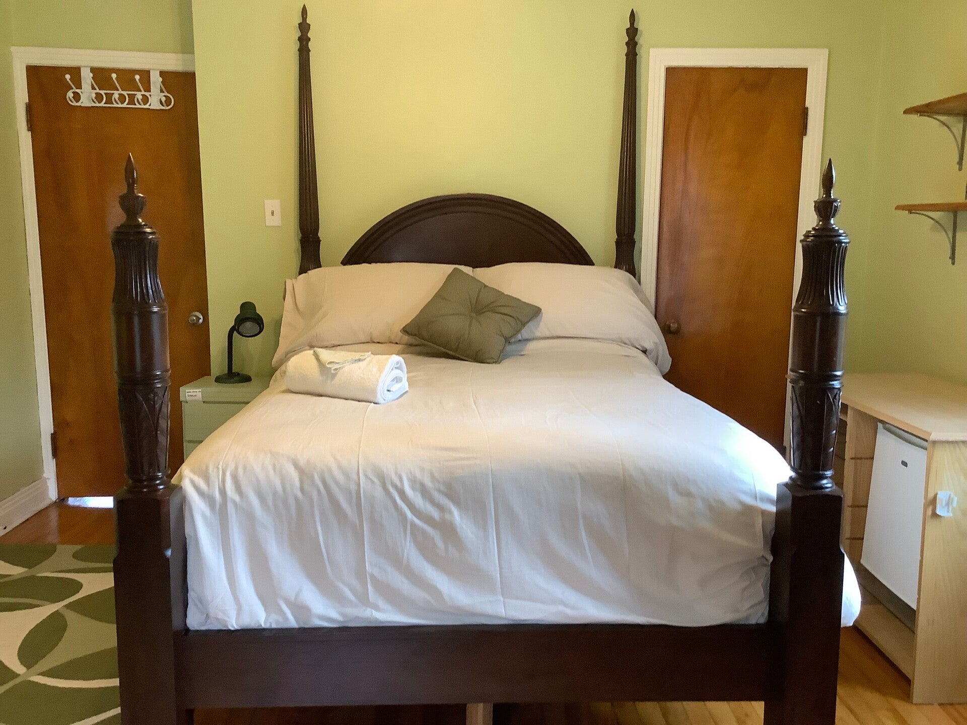 Chambre spacieuse avec vue sur le Mont- St-hilaire, internet, espace de travail, frigo, télé.